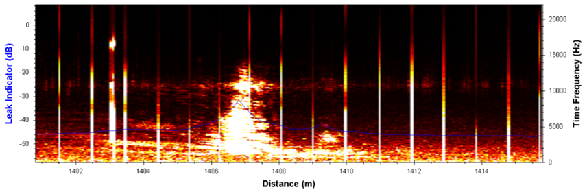 Una perdita in una condotta in pressione produce un segnale acustico che viene registrato dallo strumento e analizzato dai tecnici, in modo da valutarne l’entità.